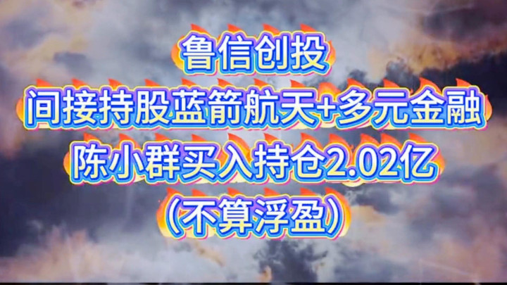 ·商业航天+可控核聚变,陈小群买入持仓2.62亿(不算浮盈)。