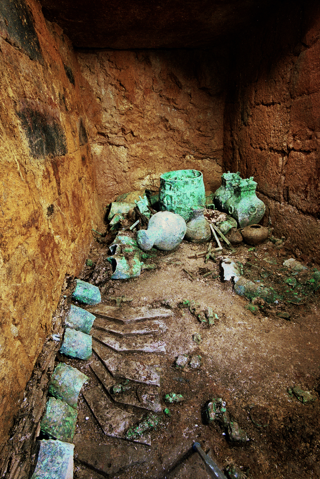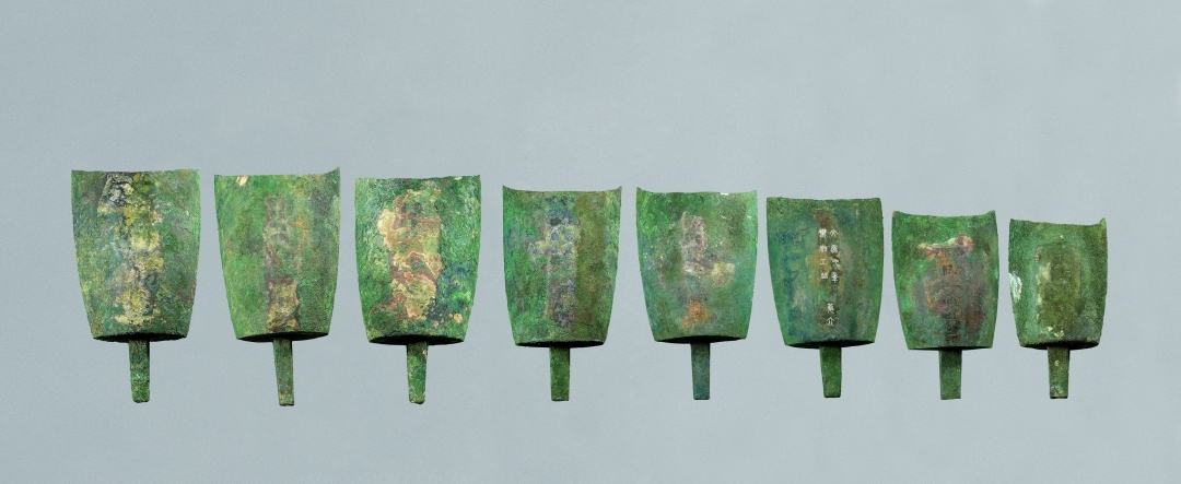南越文墓是南越国第二代王赵眜的墓葬,深藏于象岗山山腹。墓中东耳室出土了乐器和酒器等121件/套随葬品,象征着墓主生前的宴乐场所。一套八件的青铜句鑃便出土于东耳室的北墙下。