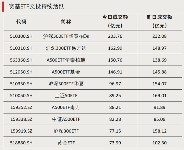 中证1000ETF(512100)今日成交额较昨日明显缩量,减少超110亿元;上证50ETF(510050)、沪深300ETF(159919)也明显降温,成交额均较昨日减少80亿元左右。